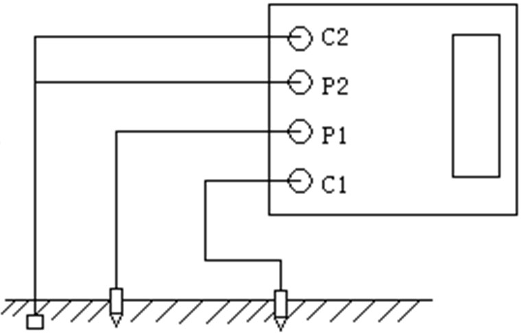 1、測(cè)量保護(hù)接地電阻時(shí),一定要斷開電氣設(shè)備與電源連接點(diǎn)。在測(cè)量小于1Ω的接地電阻時(shí),應(yīng)分別用專用導(dǎo)線連在接地體上,C2在外側(cè)P2在內(nèi)側(cè)(如下圖)所示: