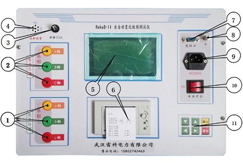 RekeB-II全自動(dòng)變比組別測試儀的面板介紹